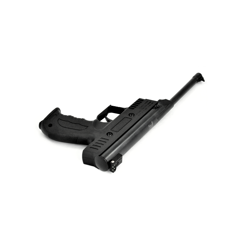 Pistolet wiatrówkowy, jednostrzałowy w kalibrze 4,5 mm (,177). Lufa w pistolecie jest gwintowana co nadaje śrutowi dużą rotację i poprawia celność oraz prędkość pocisku. W pistolecie sprężynę naciągamy poprzez klasyczne łamanie lufy.
